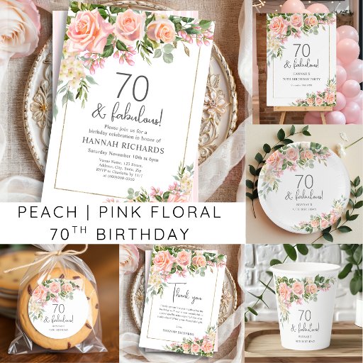 Peach | Pink Rose Floral 70th BirthdayDesigned by Natalie