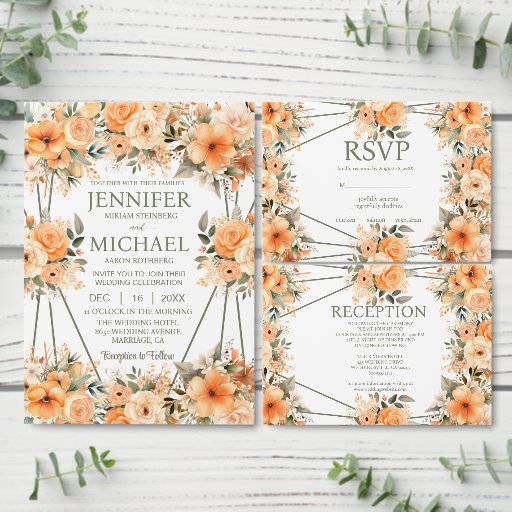 Peach, White and Green Botanical Floral Wedding Designed by Eliana S.