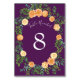 Peach & Plum Purple Peony & Rose Floral Wedding Table Number