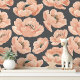 Peach Poppies On Grey Elegant Floral Wallpaper