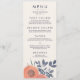 Place these elegant menu cards at each place setting for a beautiful touch to your wedding reception setup. Modern floral design in a chic coral and navy colour palette features watercolor poppy flowers in coral peach, with leaves and buds in dusty navy blue and faded hunter green. Add your names and wedding date to the top. Coordinates with our Peach Poppies wedding invitation collection.