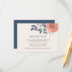 Designed to match our Peach Poppies wedding invitation collection, our chic and romantic floral reception card features a spray of watercolor poppy flowers in coral peach surrounded by leaves and buds in soft, dusty blue grey and faded hunter green. Add your key reception details in charcoal grey and midnight blue lettering, including timing, venue, and any valet or shuttle information.