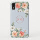 Peach Rose Dusty Blue Floral Monogram Case-Mate iPhone Case