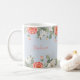 Peach Rose Dusty Blue Floral Personalised Coffee Mug