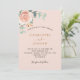 Peach coloured background. Decorated with a rose gold and blush pink floral, rose flower and green watercolored eucalyptus leaves, sprigs, greenery and faux gold sprigs. Personalise and add your names and wedding details.