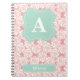 Peach Roses Mint Monogram Spiral Notebook