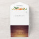 Peach Roses Rustic Wood String Lights Wedding RSVP All In One Invitation