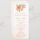 These wedding programs feature watercolor peach roses and leaves. The front of the card has the ceremony and the back of the card lists the bridal party. These wedding programs are part of the Peach Rose Wedding Collection which includes a full range of matching wedding stationery such as wedding invitations, reply cards, information cards, address labels, stickers, postage stamps, envelopes, favour boxes, wishing well cards, menus, bridal gifts and much more. Visit the collection page in our store to see the full range of products that you can personalise for your wedding day.