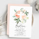 This elegant girl's baptism invitation features a white background with a white cross surrounded by peach colour roses and greenery in watercolor. The reverse side features a light blush pink background with white polka dots. Personalise it for your needs. You can find matching products at my store.