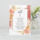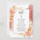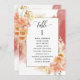 Help your guests find their table with this elegant modern seating plan cards with guests names with exquisite peach and cream floral and rust red-orange watercolor stain. Double sided cards so guests can look from both, front or back for their names in hanging displays. Clear space all around giving you the liberty to use clips or punch hole for hanging displays, or use table holder/frame. Frame with delicate floral details in a beautiful blend of peach, orange, blush pink, dusty coral and cream champagne hues. Modern hand written calligraphy details. Several color options. Have all table numbers in same color or mix colors according to your event's color theme. Part of our "Peach Floral Delight with Rust Orange" collection with a variety of coordinating products available, including table number cards and menus. Visit the entire collection at: https://www.zazzle.com/collections/peach_floral_delight_and_rust_orange-119930026374948611