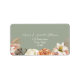 This elegant return address label features a soft sage green background with watercolor peach, cream, and blush florals—perfect for sealing your wedding invitations or thank you cards. A beautiful match for boho or rustic wedding stationery.