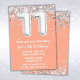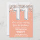 Peach and silver 11th Birthday invitation 11 birthday party invitation for a black white silver with modern script writing and fun foil balloons.