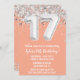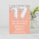 Peach and silver 17th birthday party invitation 17 birthday party invitation for a boy or girl with modern script writing and fun foil balloons.