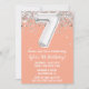 Peach Silver 7th Birthday Party Invitation