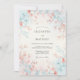 This design features a delicate watercolor arrangement of soft wildflowers in shades of peach and light blue. The airy composition creates a romantic and ethereal atmosphere perfect for a seasonal spring event. Intricate botanical sprigs and dainty blossoms drift across the creamy background, offering a serene and natural aesthetic for a traditional ceremony.