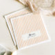 Baby shower paper napkins from our "Sweet little peach" theme collection, featuring a pastel peach striped background and a vintage script font.
