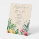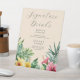 Peach Tropical Floral Signature Drinks Wedding Pedestal Sign