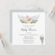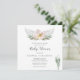 Elegant watercolor botanical gender neutral baby shower invitation frames your details with a top border of pastel leaves, Angel wings and florals in pale, shades of greys, peach and greens on a pure white background in a unique square format. Your event details are set in an elegant traditional sans serif and calligraphy script font. This invitation includes a religious scripture that you can edit to include a bible verse that suits your needs. The perfect invitation for spring, summer, fall autumn, rustic or garden theme gender reveal baby showers. To see more designs like this visit VG Invites at www.zazzle.com/vginvites