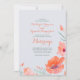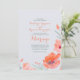 Romantic watercolor flowers wedding invitation with peach blooms and little leaves branches. Cute and casual handwritten style typography wedding invitation for garden or summer outdoor wedding with peach flowers arrangements.