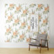 Peach watercolor flowers floral wedding bridal shower tapestry. A lovely floral design featuring a pattern of a bouquet of peach coral watercolor cactus flowers and succulent leaves, your names in a script typography and the date of your wedding.
