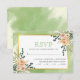 Peach watercolor flowers sage floral wedding RSVP Card