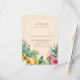 An elegant peach watercolor tropical flowers with greenery RSVP card with your details set in modern typography. Designed by Thisisnotme©