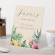 Peach Watercolor Tropical Flowers Wedding Favours Pedestal Sign