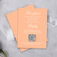 This peach wedding RSVP response card features refined typography paired with an elegant calligraphy script for a warm, romantic look. Designed for wedding reception stationery, this simple and minimalist response card includes a scannable QR code that directs guests to your wedding website for an effortless reply. Perfect for couples seeking soft elegance, modern design, and a streamlined RSVP experience with a timeless peach tone.