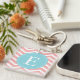 Peach White Chevron Blue Monogram Key Ring