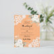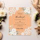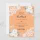 For an elegant and romantic wedding. A peach coloured background decorated with white florals, roses and white lace. Personalise and add your names and details.