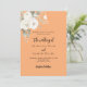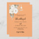 For an elegant and romantic wedding. A peach coloured background decorated with white florals, roses. Personalise and add your names and details.
