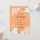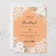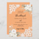 For an elegant and romantic wedding. A peach coloured background decorated with white florals, roses and white lace. Personalise and add your names and details.