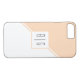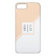 Peach and white geometric iPhone 8/7 Case with monogram. The front includes two diagonal stripes one peach and one white that separate the card in two triangles. A white square is on the centre with your monogram.