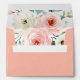 Peach, pink, and white watercolor floral wedding return address envelope.