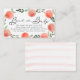 This cute book baby shower book request/please bring a book/books for baby enclosure card features a white background with peaches and green leaves in watercolor. The reverse side features a white background with peach pink stripes. Personalise for your needs. You can find more matching products at my store.