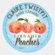 Cute emoji-face peaches on this fun home canning label for your peach pie filling, jam, or just fruit, personalised with your name, title, and choice of colour scheme.