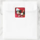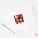 Peaches the Tuxedo Cat is wearing a Santa hat and a Christmas red bowtie ribbon. She looks stunning with a beautiful look on her face on a lovely velvet look background. A gorgeous cat sticker for the holidays! Copyright Peaches the Tuxedo Cat