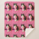 Peaches the Tuxedo Cat will keep you warm this winter as a pretty pink sherpa blanket. Peaches is wearing a custom pink "P" bandanna and is looking right at you. Curling up with a kitty is a great way to stay warm.