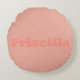 This is a very pretty Peachy Comfort Colour Round Pillow. The name Priscilla is on the front of the pillow in another peach colour.. The round Peachy Priscilla pillow looks very pretty and modern. You can change the name on the pillow by clicking the Personalise link and typing in a name.
