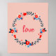 Pretty print for any room or office. It's a peach coloured background with a floral wreath and love in the centre.