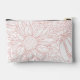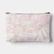 This cosmetics bag features an oversized line art drawing of chrysanthemums in peachy pink over a white background on both sides and with a personalized name on one side. Original art from Dogwood & Thistle.