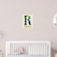 Stylish poster print features peacock coloured agate and gold vein filled monogram letter R and room to add name or other message
