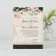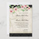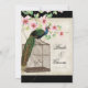This is a very fun and elegant invitation. Featuring stylised, hand watercolored flowering blossom branches, a vintage peacock perched on a hand drawn bird cage with hand painted swirls in the background. The lacey parchment background is also original artwork and you can select your own choice of background border colour, shown here in black. On the reverse side is the swirls and blossoming branch with the parchment, a detailed damask pattern in the background and your wedding invitation text. YOU MIGHT ALSO ENJOY: