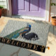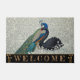 Welcome Doormat featuring Peacock and Black Swan vintage artwork surrounded by a beautiful botanical garden, flowers in winter whites laced in gold of Art Nuovo following in style of William Morris. Fabulous gift for mowing house, weddings and anniversary. Easily customise welcome text. For other versions / adjustment, please see my store.