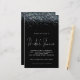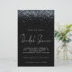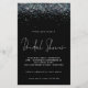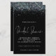 Peacock Blue Glitter Budget Bridal Shower Black Invitation. A LARGER size 5.5” x 8.5” at a budget price, on an elegant 110 lb LINEN stock – for a luxury feel at great value, this is perfect for invitations, menus, programs etc. This budget size 5.5 x 8.5” alternative is also available in other paper choices. The SEMI-GLOSS 110 lb card stock is about the same thickness as a postcard, so also works well for invitations. The FELT 100 lbs paper is buff coloured, NOT white, so adds a rustic touch. The MATTE 80lbs paper stock is bright white, for crisp printing, great for your menus and programs, whilst the SATIN 80lbs paper is thin and light, ideal for enclosures. PLEASE NOTE THE OPTIONAL ENVELOPES ARE A LITTLE BIGGER IN SIZE AT 6.75” x 9” approx.. Glam and glitz style with a faux glitter border at the top on both sides and occasion header in a set informal script on a classic black background. Easily personalise the rest of the text to your own details.