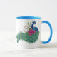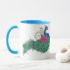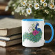 Peacock with a fuchsia lotus flower and henna in a backdrop of light blue