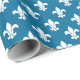Peacock Blue White Fleur de Lis Pattern Wrapping Paper