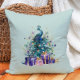Elegant purple, blue, and teal peacock Christmas decorator pillow. Personalise with your own text or change the background colour. Contact me for assistance with your customisations.