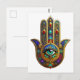 Peacock Color Flower Petals Hamsa Green Third Eye Postcard