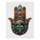 Peacock Colors Hamsa w/ Gold Third Eye Poster